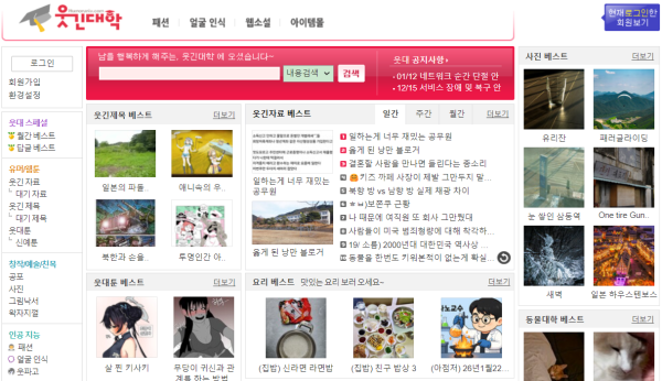 웃긴대학은 유머와 패러디에 특화된, 놀이 문화가 강한 전통적인 한국 유머 커뮤니티입니다.