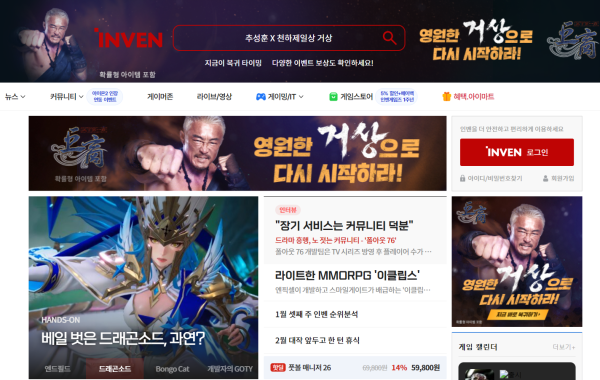 **인벤(Inven)**은 한국에서 가장 영향력 있는 게임 전문 커뮤니티·미디어 사이트입니다.