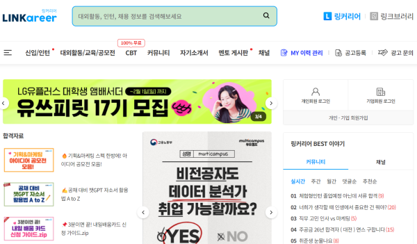 **링커리어( Linkareer )**는 취업 공고, 대외활동·공모전 정보, 자기소개서 자료 등 구직·커리어 준비를 위한 정보를 모아 제공하는 한국 기반 취업 플랫폼입니다.