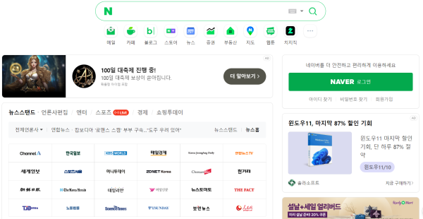 네이버는 한국어 검색에 최적화된 웹 검색 기능을 제공하며, 뉴스·이미지·영상·쇼핑 등 다양한 영역 검색 결과를 보여줍니다.