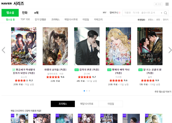 무료 연재 및 일부 유료 에피소드 제공
